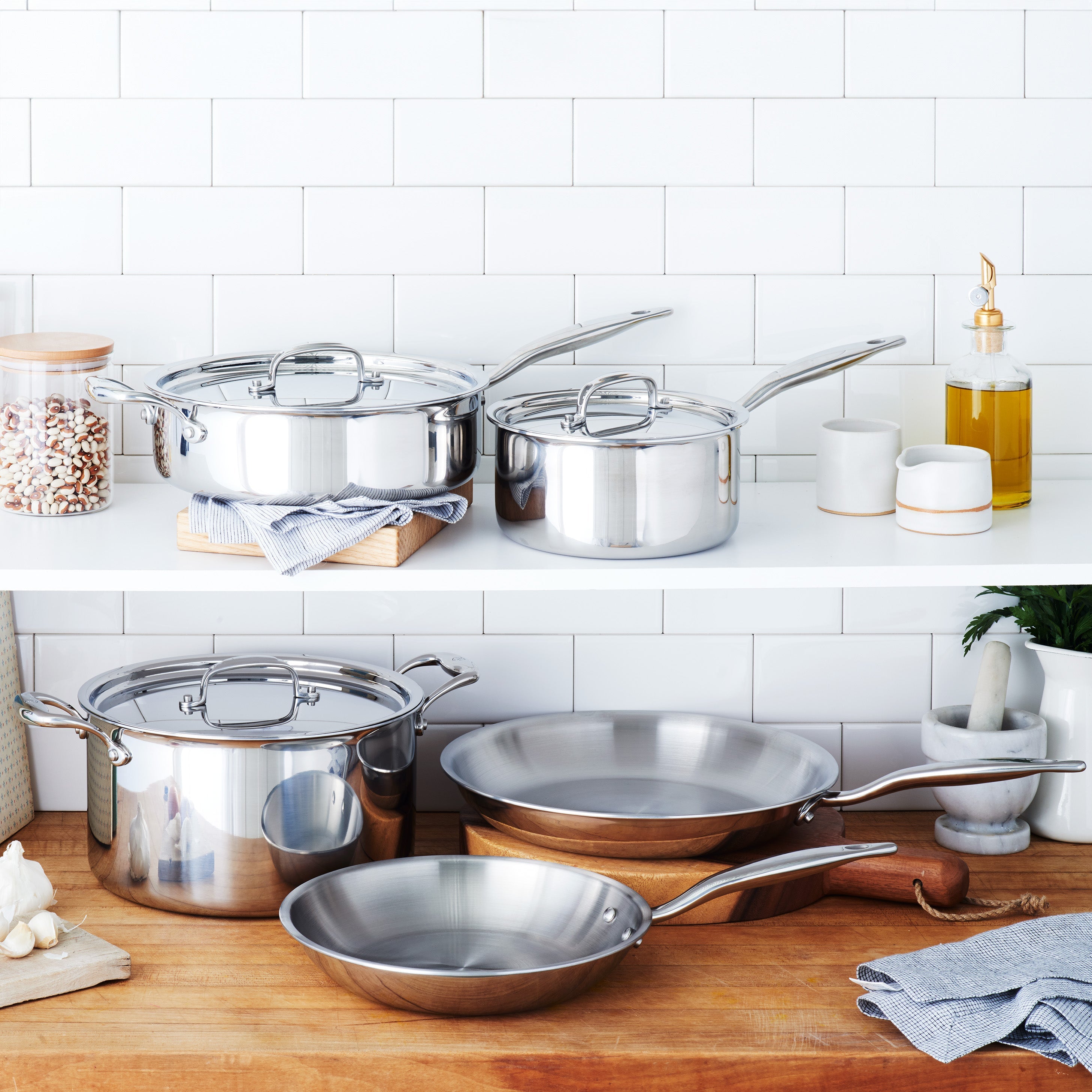 This set has all of the core cooking pieces you need in your kitchen. It includes the 3 quart saucepan with lid, the 4 quart sauté with lid, the 8 quart stock pot with lid, and the 10.5" and 12" fry pans.