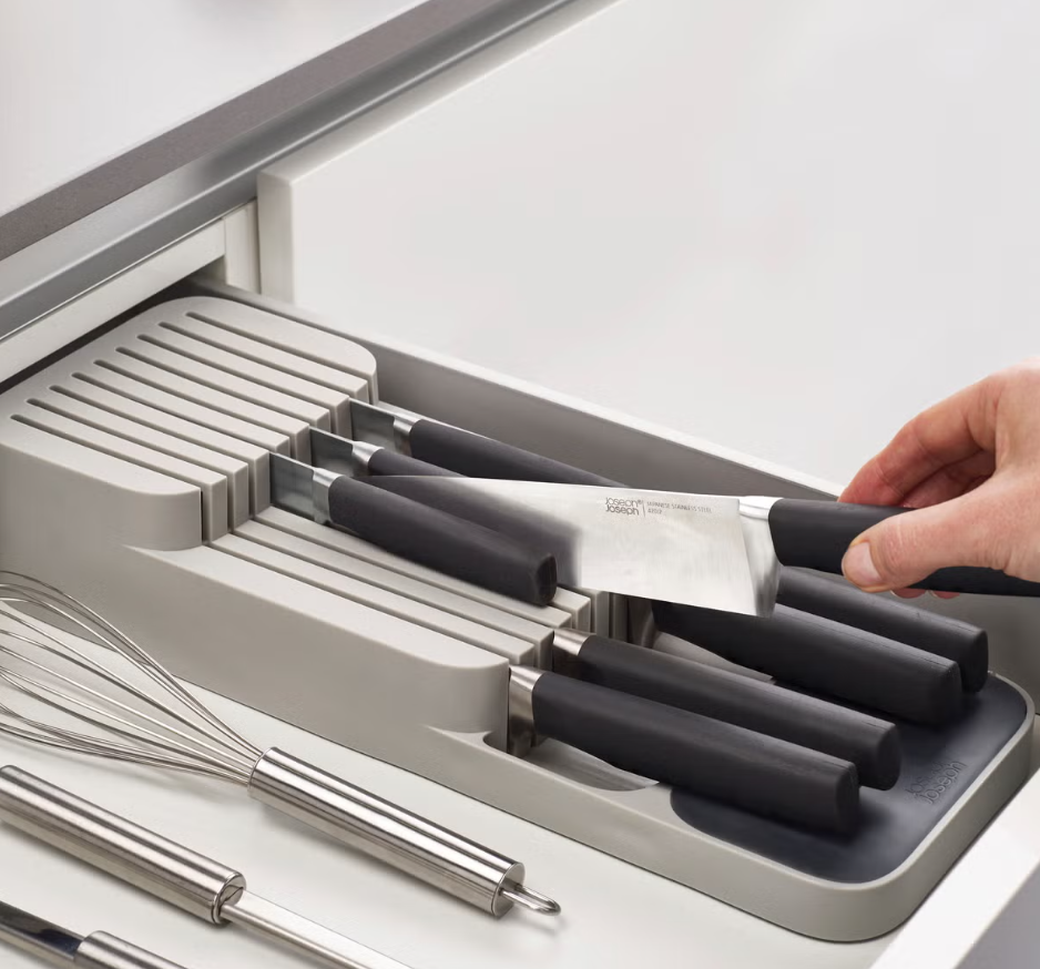 - Space-saving 2-tier knife organizer.