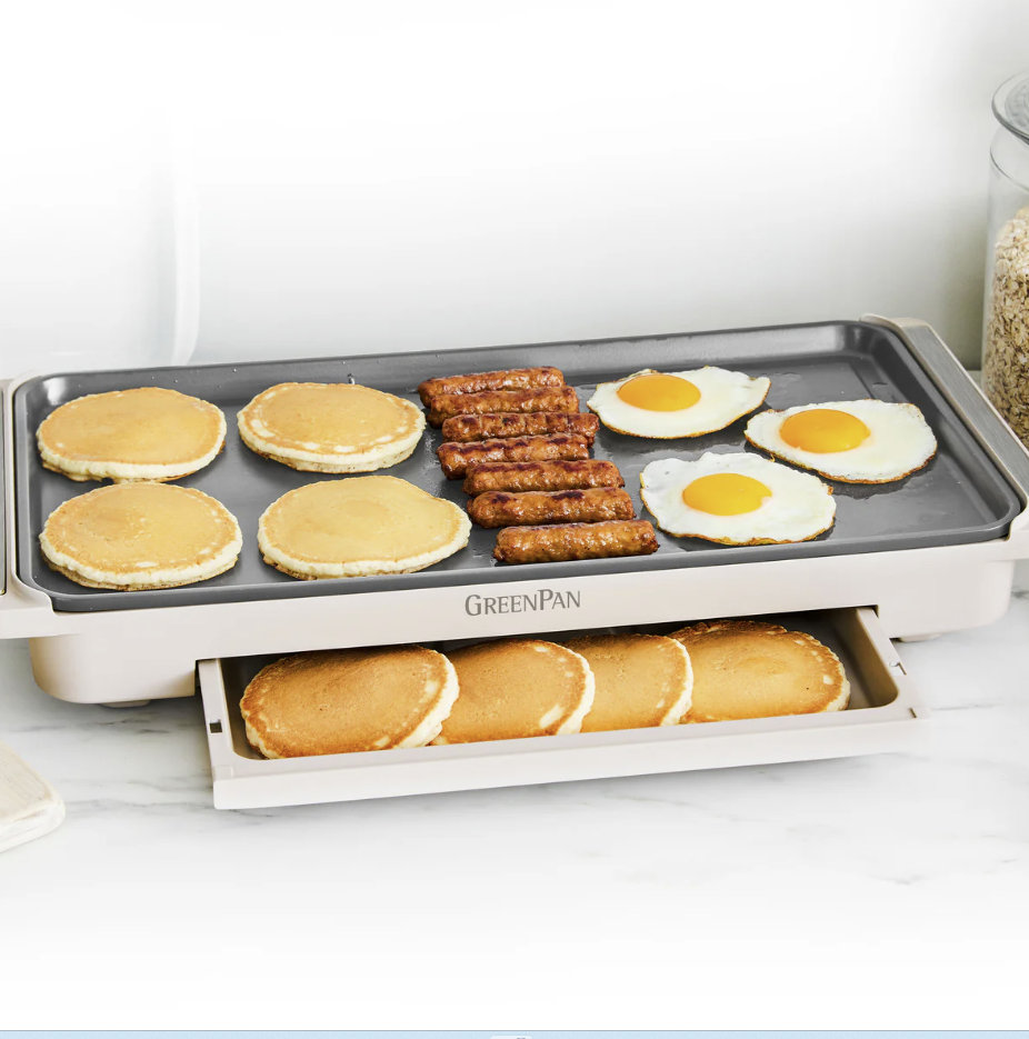 Whether you’re crafting a family-sized brunch or need room to make burgers for everyone, this spacious 10.5" x 20" griddle ensures all your food will be ready at the same time with the handy warming drawer.